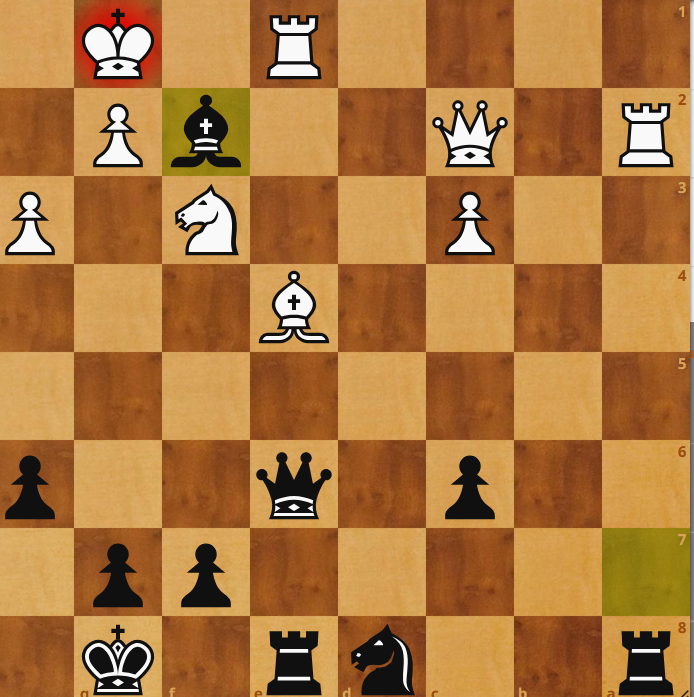 Nur das präzise 26.Dxf2! Dxa2 27.Lh7+! hätte Weiß im Spiel gehalten. Schwarz hätte danach zwar eine etwas angenehmere Stellung besessen, doch die Partie wäre weiterhin offen geblieben und der Kampf hätte problemlos weitergehen können.